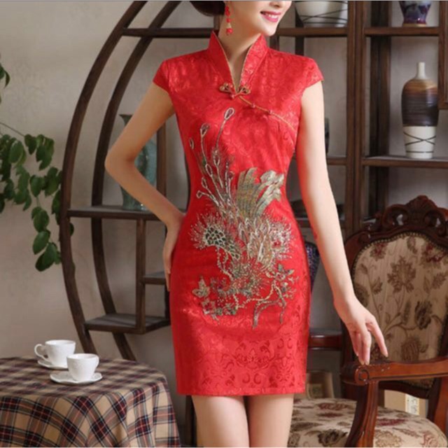 Embroidery Chinese New Year Cheongsam Dresses Women Wedding Red Dress Clothing Shopee Malaysia